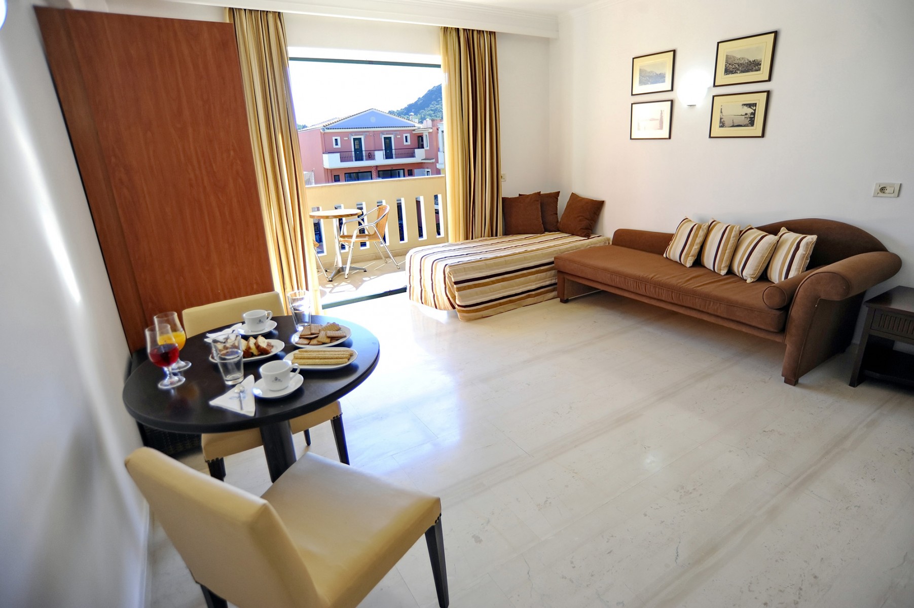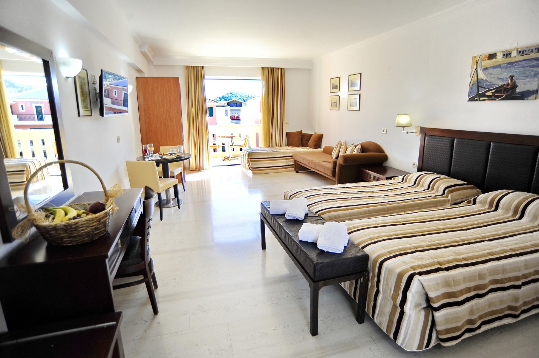1 διπλό κρεβάτι ή 2 μονά κρεβάτια και 2 καναπέδες-κρεβάτια